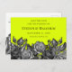 Parlez-nous de votre prochain mariage avec ces cartes postales faciles à customiser. Ces cartes de dattes présentent une illustration de style gravure antique de roses en noir et blanc contre un arrière - plan lumineux et dynamique couleur vert citron électrique. Il y a beaucoup de place pour vos informations à l'avant de ces cartes postales avec de l'espace pour des informations supplémentaires à l'envers.