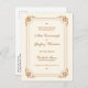 Élégante carte postale d'enregistrement de date de mariage vintage avec vos coordonnées à l'intérieur d'un cadre en cuivre de style antique avec des fioritures dans les coins, sur fond ivoire. Ajoutez votre adresse de retour et votre message personnel au verso. Ce design est idéal pour un mariage formel.