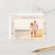 Annoncez votre mariage en style avec ces plages enregistrer les cartes postales date! Caractéristiques d'une photo de fiançailles paysage et d'une illustration d'étoiles de mer maigre avec du texte personnalisé qui peut être personnalisé à l'avant et à l'arrière de la carte. Style simple et élégant, parfait pour une destination mariage balnéaire. Couleurs : blanc neutre, beige / sable et marron taupe / gris