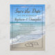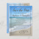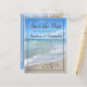 Cartes de mariage "Enregistrez la date" avec des coeurs dans le sable. "Enregistrez la date" avec des coeurs dans le sable. Thème océan bleu aqua avec des vagues qui se brisent sur le rivage. Un rappel pratique pour vos invités de votre prochain mariage de destination plage océan.