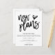 Parce que lorsque les circonstances signifient qu'il est malheureusement devenu nécessaire pour vous de changer la date de votre mariage, c'est un moyen pratique de faire connaître à vos invités votre changement de plan et de nouvelle date dès que possible. Ce design artistique a un design stylisé au sommet New Plans avec un motif cardiaque. Le reste du texte des deux côtés vous pouvez facilement personnaliser.