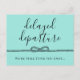 Vous avez changé la date de votre mariage ? Faites-le savoir à vos invités avec cette carte postale turquoise avec la mention "départ retardé" écrite en script fin au-dessus d'une corde nouée en symbole de l'infini. Ajoutez vos nouvelles informations de mariage au verso.