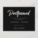 Écriture blanche brossée tendance Carte postale mariage reportée. Plusieurs lignes de texte modèle pour vos noms, date, message et site Web. La couleur Arrière - plan, en noir, peut être customisée.