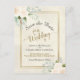 Cette belle carte de sauvegarde de mariage présente un design élégant et bohème chic avec des roses blanches ou pêche pâle à l'aquarelle et des brins de feuilles d'eucalyptus sur un fond ivoire marbré avec des bordures dorées en faux-foil. La lettre est à la fois noire et dorée et présente une calligraphie script lacy. Le dos comporte un graphique mignon "pencil us in" et un espace pour une note personnalisée et un site web. Un excellent moyen de faire savoir à votre famille et à vos amis votre mariage imminent.