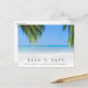 Préparez vos invités pour votre jour de mariage avec nos cartes postales "Save the Date" pour un mariage simple à la plage. Le recto de cette carte postale présente une belle photographie de palmiers sur une plage tropicale immaculée. Avec son sable blanc poudreux et ses eaux turquoise cristallines, cette image transporte vos invités dans une oasis sereine et transmet instantanément la beauté de votre destination choisie. Personnalisez votre carte postale en ajoutant vos informations de mariage au recto et au verso de la carte.