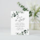 Eucalyptus Verdure Calligraphie moderne Mariage Enregistrer la date Faire-part Carte postale... Notre carte postale botanique Save the Date présente des feuilles d'eucalyptus vert sauge et émeraude, créant une bordure naturelle pour le texte faire-part à l'intérieur. Le dos de la carte contient votre adresse de retour, les informations du site Web du mariage et un modèle graphique de code QR que vous pouvez facilement remplacer en tapant l'URL de votre site Web mariage directement sur le modèle de personnalisation. Tous les exemples de texte des deux côtés de la carte (à l'exception des éléments de calligraphie) peuvent être facilement révisés avec vos propres détails sur le même modèle de personnalisation.