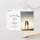 Demandez à vos invités d'enregistrer votre date de mariage avec ce design simple et élégant avec votre photo, script moderne, texte bleu marine et un palmier artistique doré. Customisez-le avec votre photo, la date du mariage, les noms et l'emplacement sur le devant ainsi que votre message et l'adresse de retour sur le dos.