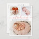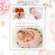 Carte postale moderne, minimaliste Girly 3 Photo Collage Merci bébé Faire-part de naissance. Elégant, mignon faire-part de naissance photo avec trois (3) de vos photos préférées avec un joli texte écrit à la main "introduction" dans un script de calligraphie tourbillonnant avec des échasses ou des queues en rose vif sur blanc. Ajoutez le nom de votre bébé, le message de remerciement et les statistiques de naissance. Facile à personnaliser.