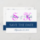 Moderne, simple, sauvez la date Mariage carte Monogram Navy Blue et Fuchsia Pink. Conception par Elke Clarke©. Sauvegardez les cartes de dates pour annoncer votre fiançailles mariage et la date mariage à venir. Ajoutez vos informations et vos initiales de monogramme. Vous pouvez même modifier la police et l'espacement du texte. Une façon élégante d'annoncer votre journée spéciale. Enregistrer la carte de Faire-part Monogramme Mariage Date