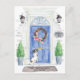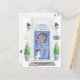 Annoncez votre nouvelle adresse avec notre faire-part élégante avec un pointeur anglais, une porte d'entrée bleue, un tapis de bienvenue, une ardoise, des topiaires et une couronne fleurie posée sur un arrière - plan en brique grise.