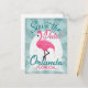 Cette Enregistrez La Date rétro d'Orlando en Floride présente un flamant rose sur un fond turquoise amusant.