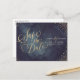 Glamor lettrage à main en or design de calligraphie et points d'or confetti sur bleu marine sombre nuit aquarelle arrière - plan, effet de parties scintillant d'or faux métallique, moderne, chic, élégant et classe, parfait pour mariage vintage ou mariage d'hiver en soirée. Personnalisez votre propre enregistrer la carte postale de date pour votre jeu de faire-part de mariage. Voir toutes les pièces correspondantes dans cette collection de calligraphie de parties scintillant dorée Glam night ci-dessous.