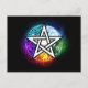 Pentagramme lumineux dessiné de manière artistique avec cinq éléments magiques, eau, terre, feu, astral, air sur fond noir. Pentagramme wiccan. Wicca