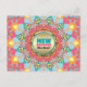 custom moving new address notification postcard : happy colourful mandala design in bright and vibrant pink, blue and orange yellow glowing lights- celebration of new home and beginnings : customizable postcard - shown here as a new address / house move announcement