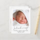 Une carte postale simple et mignonne pour bébé sans faire-part de naissance de sexe. Le recto présente la photo de votre nouveau-né, son nom complet, sa date d'arrivée et ses statistiques de naissance, ainsi que l'"introduction" écrite dans un script élégant se terminant par une floraison cardiaque. Au verso de la carte, vous pouvez ajouter une photo et des noms de parents et de frères et soeurs, ainsi qu'un remerciement, une visite ou un autre message.