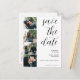 Script de typographie moderne noir et blanc minimaliste tendance enregistrer la date carte postale avec 4 collage photo personnalisé et numérisation QR CODE lien vers le site Web ou la galerie de photos (INSÉREZ SEULEMENT VOTRE LIEN ET LE CODE EST AUTOMATIQUEMENT GÉNÉRÉ). ++++++++++++ Convient pour toute saison et thème. ++++++++++++ Facile à personnaliser avec vos photos et détails des deux côtés !