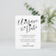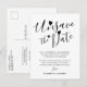 Carton d'annonce de report de mariage en typographie de police de caractères script moderne coeurs