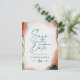 Cartes de mariage "Save the Date" à l'aquarelle éthérée abstraite avec du vert sarcelle foncé et du cuivre. Ce design de mariage moderne est magnifiquement peint à la main avec des couleurs riches qui sont parfaites pour l'automne. Présenté dans la gamme de couleurs "Dark Teal Wedding Color Palette" comprenant : sarcelle foncée, vert paon, rouille cuivrée, or poussiéreux, bosquet d'amandes et beige bisque. Avec des détails en feuille de métal faux et une superbe police de caractères à queue, la collection de mariage à l'aquarelle éthérée est sûre de rendre votre mariage mémorable et beau !