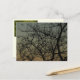 Carte postale avec espace pour le message, l'adresse et le cachet. Utilisez un stylo imperméable sur ce papier glacé, recyclé à 50 %, certifié FSC. La photo pleine page montre un arbre devant ma fenêtre. Les Robins volaient et se doraient dans l'arbre à l'aube.