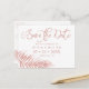 Annoncez votre prochain mariage avec cette feuille de palme tropicale rose moderne enregistrer la carte postale date, avec typographie script tendance.