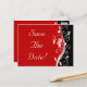 Carte Postale Faire-part Rouge Blanc & Noir Fleurs Mariage Épargnez la Dat