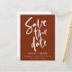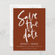 Rust et Blanc Moderne Script Calligraphie Manuscrite Simple Mariage Enregistrer la Date Annonce Carte Postale