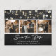 Photo de mariage de tableau rouge rustique personnalisée enregistrer les cartes postales datées avec un collage photo contre un arrière - plan de tableau noir orné de lampes à cordes. Personnalisez facilement cette photo rustique enregistrez la carte postale de la date avec vos images et les détails du mariage, y compris un site Web mariage, si vous le souhaitez. Pour des demandes personnalisées, envoyez-nous un message.