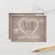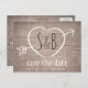 Rustique Coeur en bois Mariage élégant SAVE THE DATE La carte postale est dotée d'un arrière - plan à effet de bois avec coeur sculpté et flèche design avant et arrière. Personnaliser pour vos propres noms, adresse, initiales.