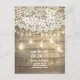 Rustique enregistrer la carte postale de date : lucioles lanternes de mât de mason, chaîne de lumières, vieille dentelle vintage et grange bois texture arrière - plan.