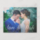 Un mariage élégant enregistrer la carte postale de date conçue pour accueillir votre photo fiançailles horizontale ou paysagère préférée. "Enregistrer la date" apparaît sous la forme d'une superposition de texte blanc dans un script de calligraphie écrit à la main. Personnalisez avec vos noms, date mariage et emplacement du mariage en dessous. Les cartes postales sont inversées pour afficher d'autres détails sur la date, y compris votre site Web mariage, avec votre adresse de retour et l'espace pour l'adresse du destinataire.
