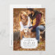 Élégante et simple, la carte postale "save the date" présente votre photo préférée au format portrait avec "save the date", votre date de mariage, vos noms et le lieu de la cérémonie affichés dans une typographie noire classique sur un élément rectangle blanc cranté accentué d'un petit ornement. Un choix discret pour les couples sophistiqués.