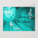 Elégant, glamour 15e anniversaire / Quinceañera Anniversaire enregistrer la date carte postale. Flambée et glamour branché Sauvez les dates pour vos célébrations d'anniversaire de Quinceañera / 15th. Magnifique, éblouissant turquoise scintille diamants bling bijoux image de la note musicale, boule de miroir rétro turquoise funky et turquoise stiletto de haute qualité image de chaussures de mode sur un arrière - plan turquoise chic. Une carte postale de date pour les fêtes d'anniversaire pour femmes, mignonne, classe, branchée, élégante, jolie. Les femmes adoreront ce design cool, amusant, funky, féminin pour leurs soirées musicales et dansantes glamour. Si vous avez besoin d'aide pour customiser votre produit, veuillez me contacter par l'intermédiaire de mon magasin et je serai très heureux d'aider.