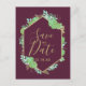 Carte Postale Faire-part Succulentes Vertes Cadre Doré Marsala Enregistrer