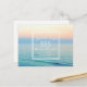 Magnifique coucher de soleil pastel ciel sur bleu océan eau design mariage de plage enregistrer la date carte postale. Une façon économique de demander à vos amis et à votre famille de réserver votre date de mariage. Customisez la carte avec votre date de mariage, les noms et l'emplacement de votre cérémonie de mariage. Ajoutez votre adresse de retour au verso des cartes postales.