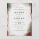 Aquarelle Ethérée Abstraite Terra Rosa Invitations de mariage. Cette invitation de mariage moderne est magnifiquement peinte à la main avec des couleurs riches qui sont parfaites pour la chute. Montré dans la palette de couleurs Mariage de Terrarosa de : Terra Rosa Burnt Pink, Juniper Dark Green, Whisper Light Pink, Light Sage Green et Dusty Rose. Avec des détails de feuille de parties scintillant métal or Rose, et une police de script signature magnifique avec des queues, la collection de mariage d'aquarelle éthéré est sûr de rendre votre mariage mémorable et magnifique! Pour en savoir plus, recherchez les collections mariages 2021 de Chic Paperie pour des designs plus tendance et palettes de couleurs mariages pour cette année.