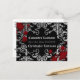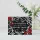 Mariage de style gothique personnalisé Enregistrer la carte postale faire-part Date pour votre mariage à thème Halloween ou vampire. La carte postale est noire avec un motif damassé gris clair à gris foncé et des éclaboussures de sang que vous pouvez retirer si vous le souhaitez. Ajoutez votre propre texte à l'avant et à l'arrière.