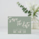 Moderne simpliste vert enregistrer la carte d'annonce de date. Autres couleurs et objets correspondants disponibles. Contactez-moi pour obtenir de l'aide sur la personnalisation.