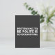 Montrez votre côté humoristique avec ce tee-shirt plein d'esprit, parfait pour ceux qui trouvent que faire semblant d'être poli épuisant. Idéal pour les introvertis et tous ceux qui valorisent l'honnêteté, cette chemise capture la lutte des subtilités sociales. Portez-le fièrement et faites savoir à tout le monde que vous êtes sur le point de le garder réel