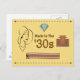 Cette carte postale célèbre le style et la mode des années 1930 avec un casquette de style cloche à large bord, une radio de style art déco et une bobine de film pour représenter l'ère cinématographique en marron muet et arrière - plan bouffant à la bordure géométrique.