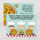 De belles illustrations d'enfants portant des casquettes de chef et tenant leurs créations de pizza. Ils se tiennent sur un sol à damiers rouge et blanc. Le dos a une pizza avec ses ingrédients. Personnalisez cette carte postale pour faire votre propre fête d'anniversaire à la pizza. À peu près tout peut être déplacé ou supprimé si vous avez besoin de faire de la place pour le texte. Cliquez sur Personnaliser pour voir vos options. Ces cartes postales sont une invitation à la fête mignonne mais peu coûteuse, et s'intègrent bien dans une enveloppe de taille A2 (vendue séparément sur ce site, votre magasin local ou un endroit en ligne comme Amazon.) Cela peut aussi être customisé comme un carte de remerciements.