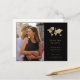 Ce mariage élégant et moderne de destination sauver les cartes postales datées disposent d'un design simple de faux or et de texte noir qui respire le style minimaliste, avec votre photo personnelle préférée. Le design comporte une carte du monde illustrée en faux or, et les mots "réserver le billet" sur un arrière - plan noir.