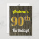 Carte Postale Faux Wood, Faux Gold 90th Birthday & Custom Name