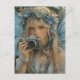 Carte Postale Fée adorable avec ailes bleues et une caméra