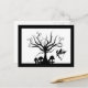 Envoyez une petite salutation éffrayante avec cette carte postale féerique déplaisante. La conception noire et blanche de silhouette dépeint un petit vol féerique près d'un arbre avec les branches bouclées et tourbillonnées. Les petits champignons des tailles variables se développent au-dessous de l'arbre. La conception est encadrée par une frontière noire. Cadeau parfait pour toute Halloween, fée, ou amant d'imaginaire. Customisez et/ou personnalisez la conception avec votre propre texte.