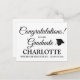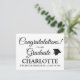 Félicitations à notre script personnalisé diplômé élégante carte postale faire-part graduation. Texte noir entièrement personnalisable, arrière - plan blanc uni. Avec un capuchon de graduation. Signe de typographie moderne et élégant, idéal pour les enfants et les adultes. Personnalisable pour la maternelle, l'école primaire, le collège, le lycée et l'université.