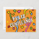 Feliz Cumpleaños Joyeux Anniversaire en espagnol pour la fête d'anniversaire, fêtes de fête ou salutation. Mots en blanc sur très coloré confetti design et arrière - plan orange.