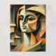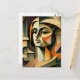 Cette carte est ornée de l'image d'une femme. Elle est représentée par les géométries géométriques et des couleurs vives, avec des parties du corps décomposées et représentées sous différents angles. Cela crée une impression de mouvement et de recul, tout en ayant une touche artistique unique.