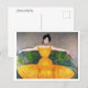 Carte postale d'art avec le tableau, Woman in a Yellow Dress (1899), de Max Kurzweil (1867-1916), peintre et imprimeur autrichien. Un leader du mouvement sécessionniste viennois. Un beau portrait d'une femme assise sur un canapé vert coloré.