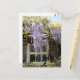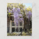 Carte postale Wisteria Window - Fleurs de Wisteria mauve/violet dans les jardins du manoir Hidcote. Photographie de Lawrence Johnston's tool shed recouvert de fleurs de Wisteria