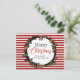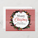 Carte Postale Festive Red Stripes Holly Wreath Joyeux Noël